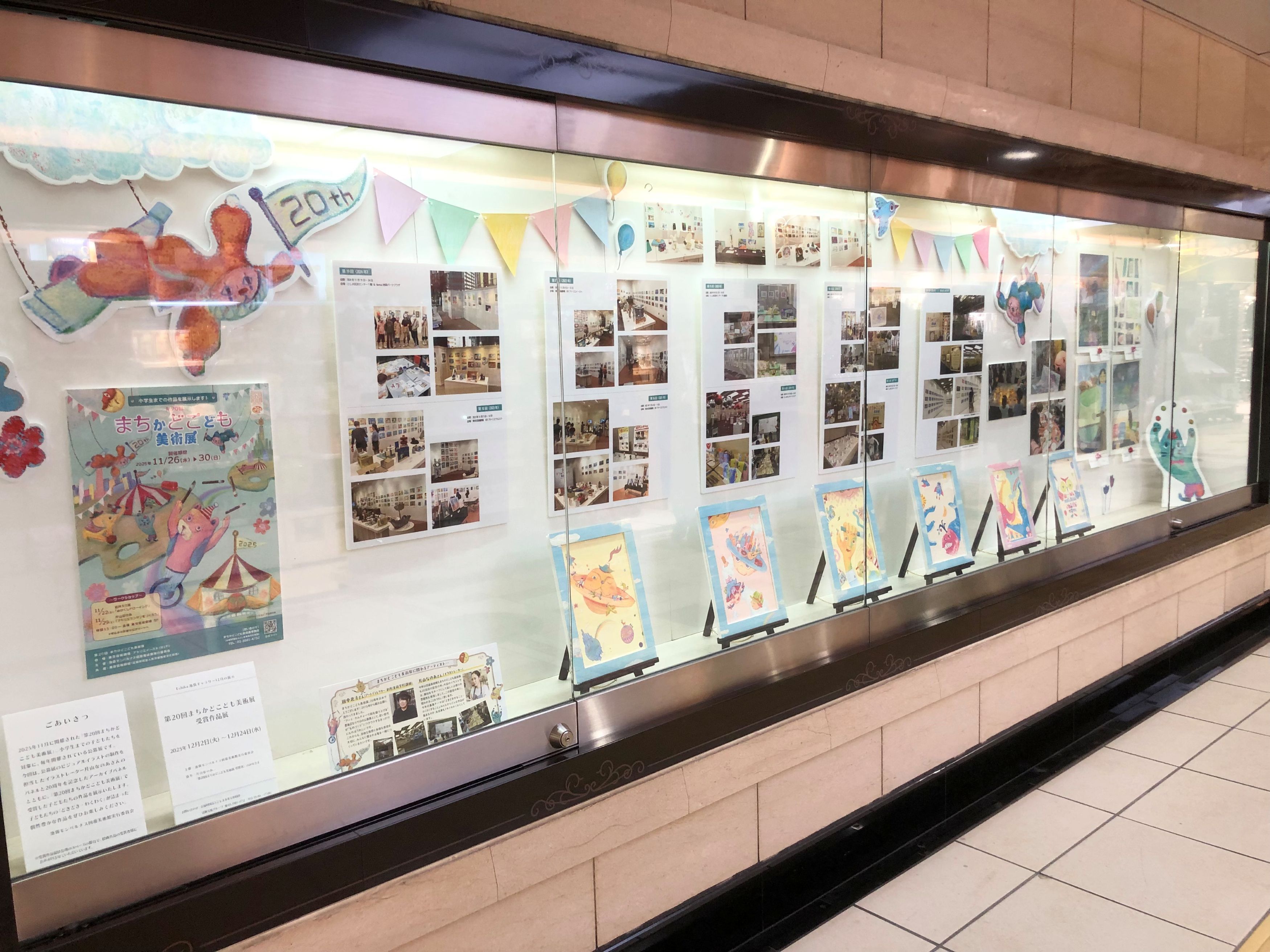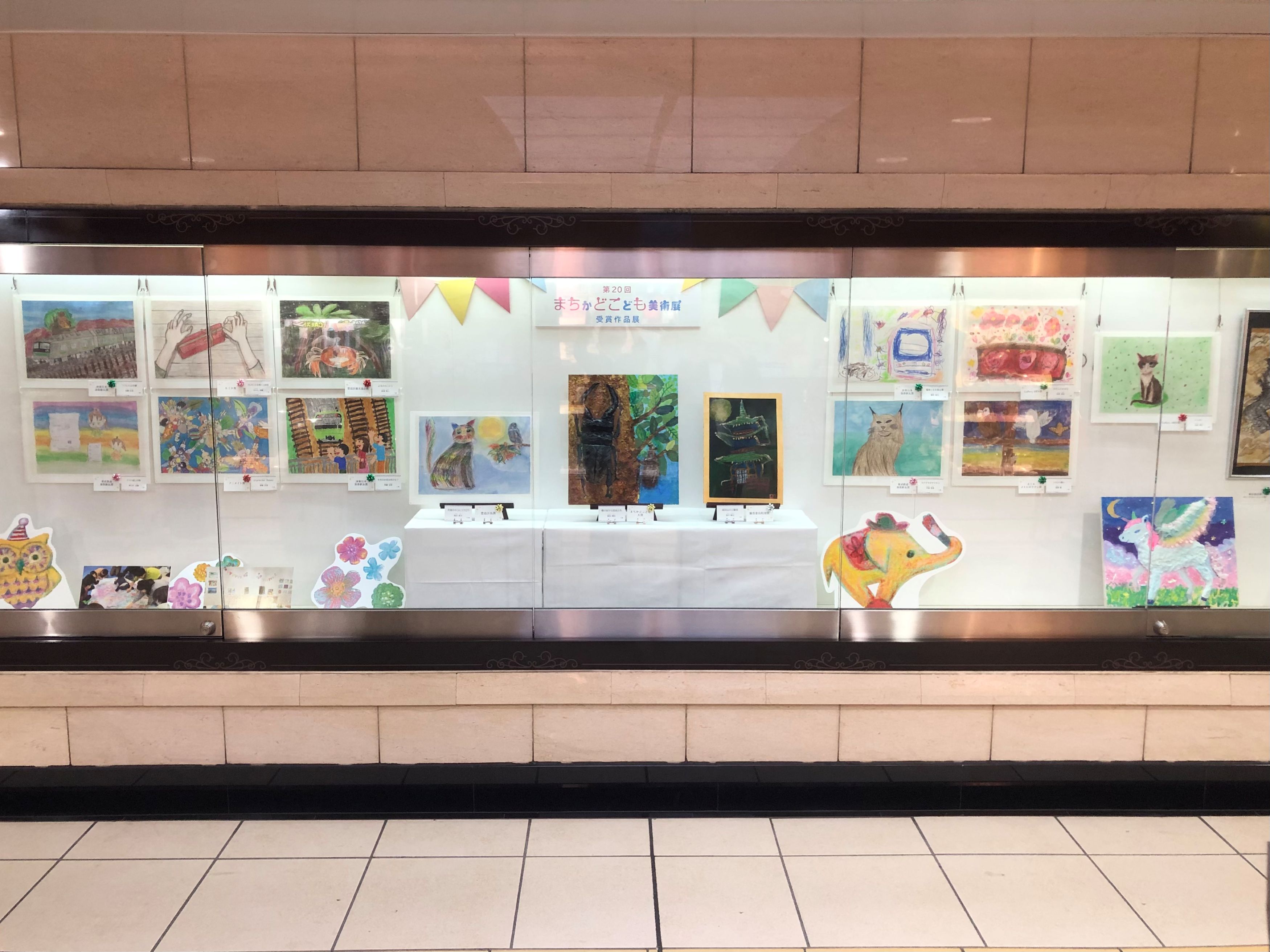「第20回まちかどこども美術展」の受賞作品20点程の展示を行います。