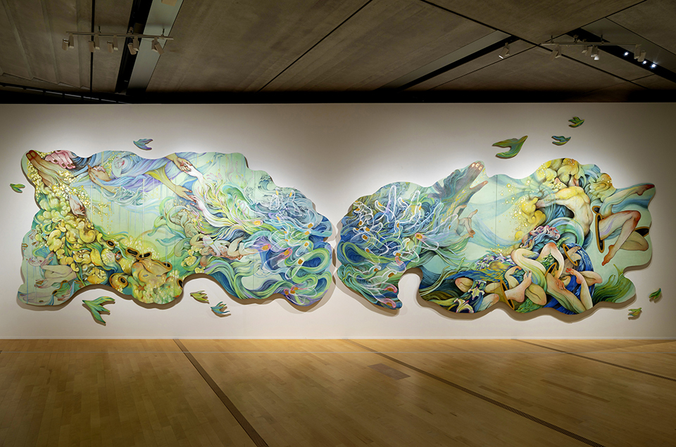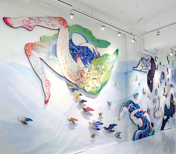 今回は、<ツナガル・ヒロガル・池袋>をテーマとする企画の第一段として、吉澤舞子の個展を開催いたします。吉澤舞子は、日本画制作を軸としながら、パフォーマンス、舞台でのボディーペインティングなど、多岐にわたる表現手法で活躍するアーティストです。